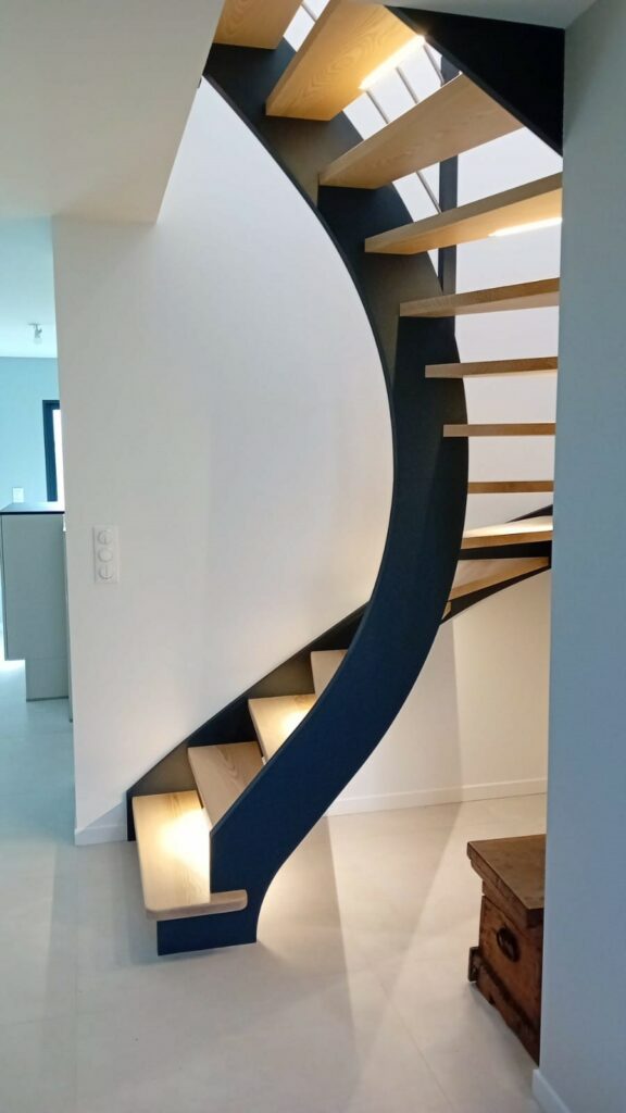 L' escalier à limon latéral “ARC” se distingue par son esthétisme et sa rondeur.